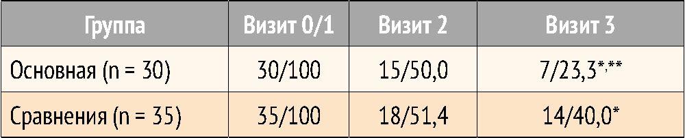 Таблица 1. Динамика баллов в группах по шкале симптомов ACSS (n = 65)