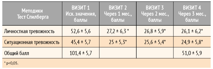 Таблица 3. Динамика состояния пациенток на фоне приема МЕНСЕ по нейропсихологическому тесту Спилберга