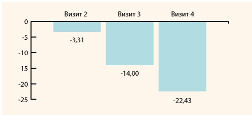 Динамика индекса Купермана в дельта-процентах по визитам в среднем по всей группе наблюдаемых пациенток представлена на рисунке 1.