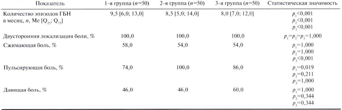 Таблица 2. Клинические характеристики головной боли у пациентов до начала лечения