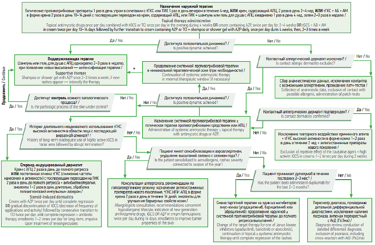 Примечание. АПЦ — активированный пиритион цинка; тГКС — топические глюкокортикостероиды; ТИК — топические ингибиторы кальциневрина; АБ — антибиотик; АМ — антимикотик.