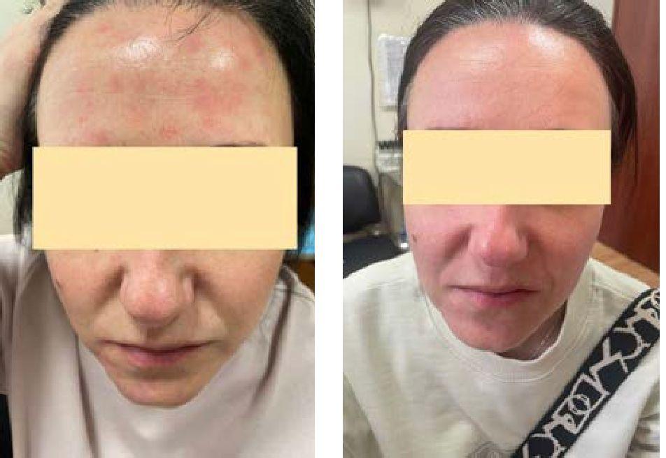 Рис. 2. Локализация: кожа лица, до и через 14 дней после проведенной терапии