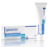 Совместное применение Дифферина (адапален) и Базирона АС (бензоила пероксид) – воздействие на 3 основных этапа формирования элементов угревой сыпи – повышение эффективности лечения.