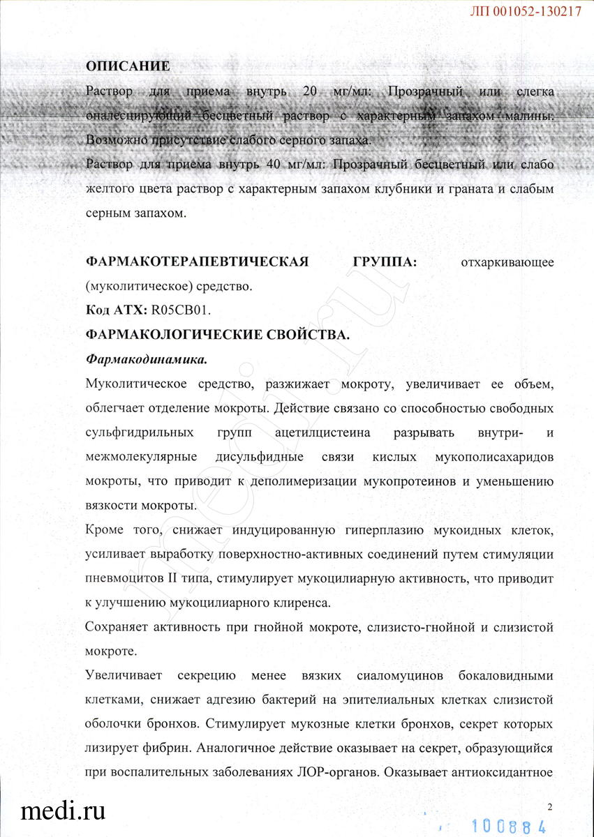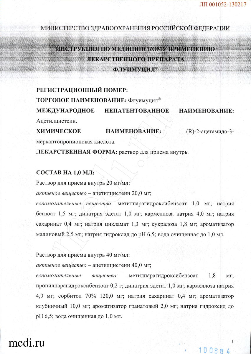 Флуимуцил раствор для приема внутрь - инструкция по применению