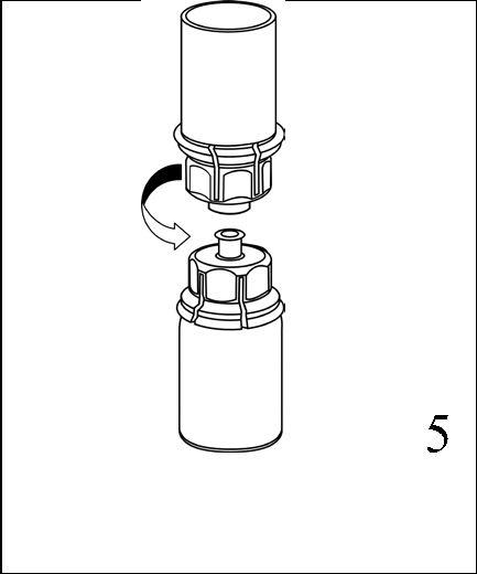 6. Аккуратно покрутите флакон с препаратом с присоединенным прозрачным устройством до полного растворения препарата. Не встряхивайте флакон. |