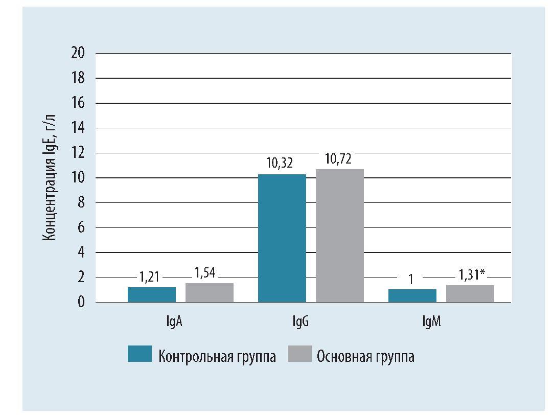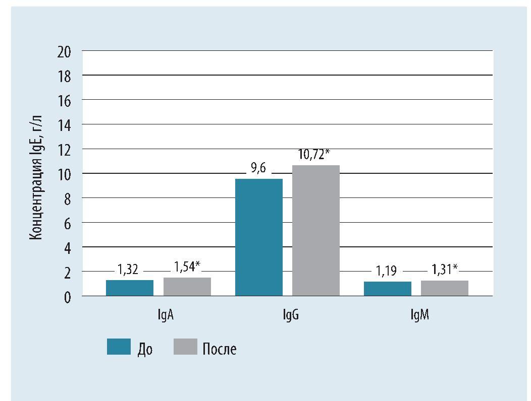 Примечание: * - уровень достоверности р < 0,05 на основании критерия Уилкоксона; Ig - иммуноглобулин.