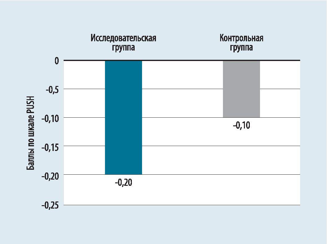 Рис. 6. Изменение среднего балла шкалы PUSH по типу ткани по группам.