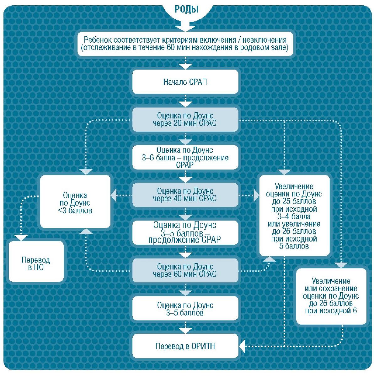Рис. 1. Алгоритм Протокола СРАР-терапии в родильном зале