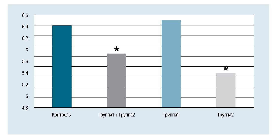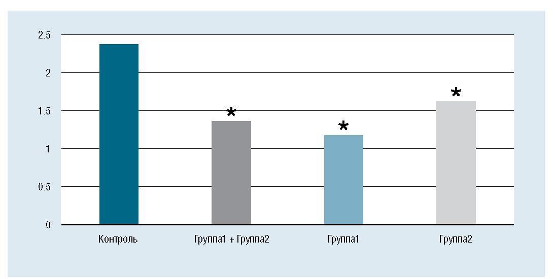 *различие достоверно (p < 0,05) по сравнению с группой контроля